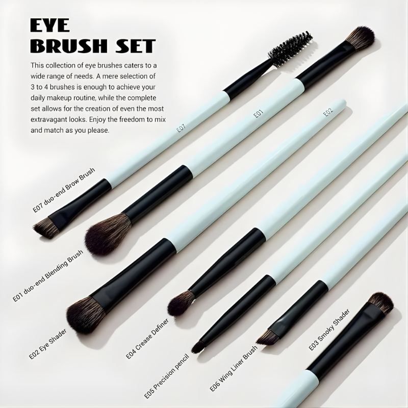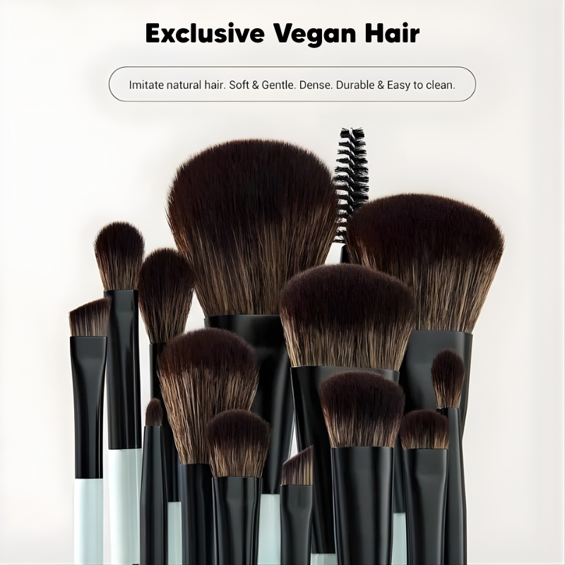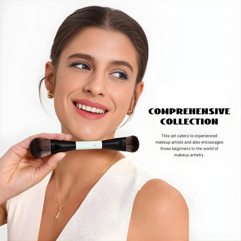 Each brush in the set is crafted to deliver smooth and even product distribution. The collection includes tools suitable for foundation, powder, blush, contour, highlight, eyeshadow, blending, and brow grooming. The balanced handle design allows steady control during application, while the soft synthetic bristles help achieve consistent results with cream, liquid, or powder formulas.
