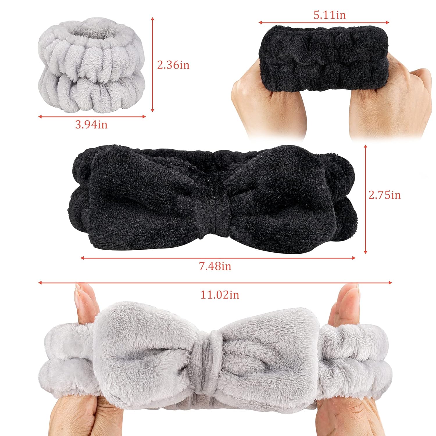 Includes 2 adjustable headbands with detachable bows for a stylish and functional touch.